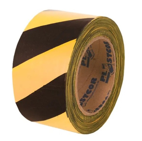 Fita Zebrada Plastcor Preto e Amarelo com 200 Metros